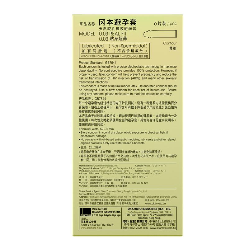 【避孕润滑】冈本003黄金6只装